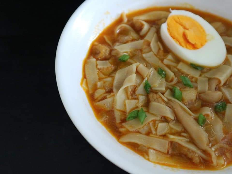 The Ilocos-style Miki noodles is a Filipino noodle soup primarily made with miki noodles (thick egg noodles), chicken stock, and annato powder (atsuete). The Ilocos-style miki is usually served with boiled egg and topped with bagnet or even chicharon. I remember my pops making his own noodles. It’s quite a tedious process that involves hand-preparing the noodles, rolling and cutting into thin flat strips, and dried in the open air.
